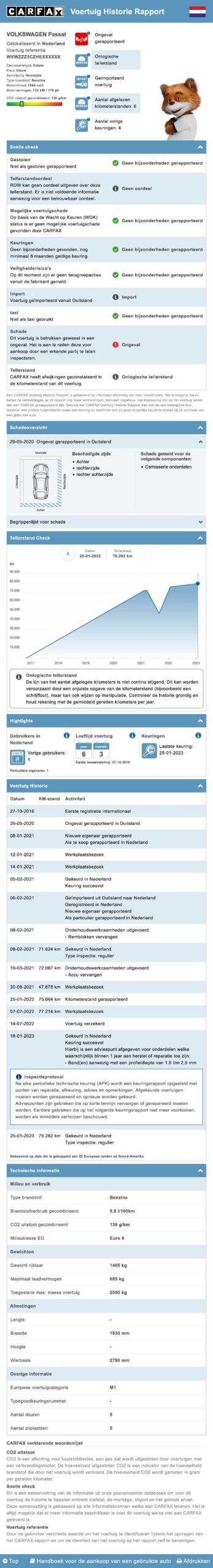 Kilometergeschiedenis en onderhoudsgeschiedenis, inclusief controle op inconsistentie van de kilometerstand